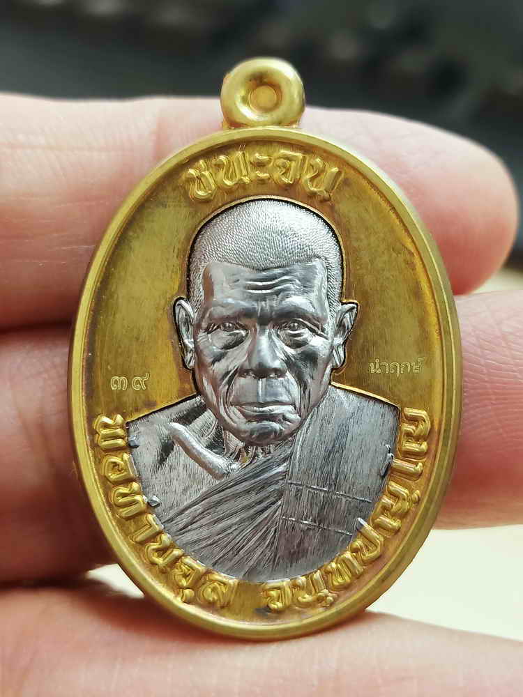 วัดใจ 100 เหรียญชนะจน พ่อท่านจุล สำนักสงฆ์ถ้ำเหมา นครศรีธรรมราช ปี 2567 ตะกั่ว หน้ากากชนวน หมายเลข 39 สร้าง 69 เหรียญ กล่องเดิม