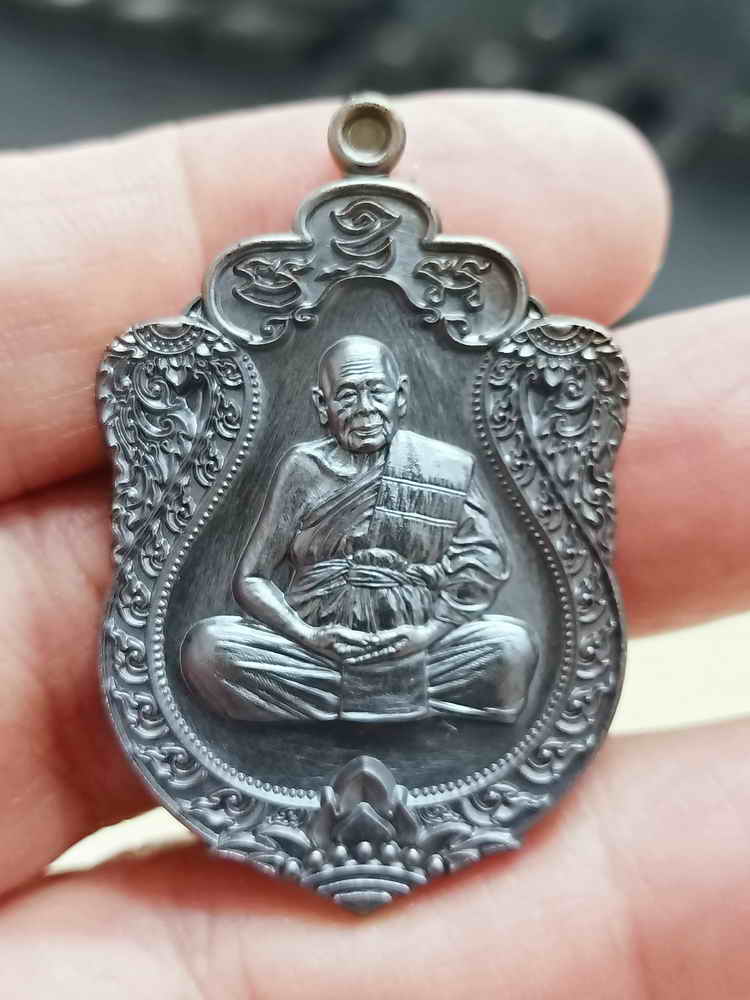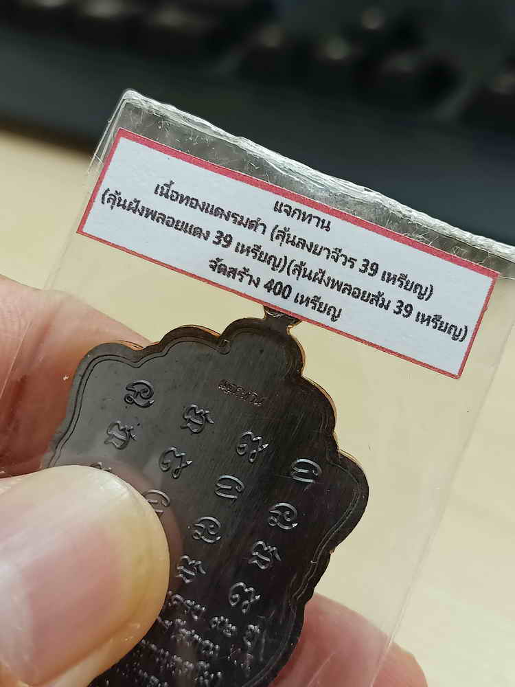 วัดใจ 100 เหรียญเสมา 72 ปี พ่อท่านผ่อง วัดแจ้ง อ.เมือง จ.พัทลุง 2567 ทองแดงรมดำ แจกทาน หมายเลข 308 กล่องเดิม
