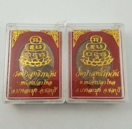 เหรียญหันข้างวัดป่าสุทธิภาวันเนื้อทองแดง 2องค์คู่เลยครับหนองปลาไหล บางละมุง ชลบุรี ผิวสวยกล่องเดิม