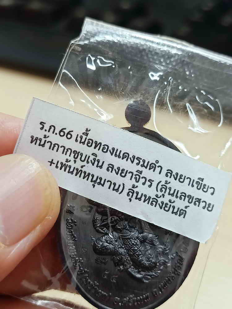 วัดใจ 100 เหรียญปราบไพรี หลวงปู่ฝั้น ปสาโท วัดศรีถมอรัตน์(วัดหน้าผา) อ.ศรีเทพ จ.เพชรบูรณ์ 2568 ทองแดงรมดำ ลงยาเขียว หน้ากากชุบเงิน ลงยาจีวร หมายเลข 54 กล่องเดิม