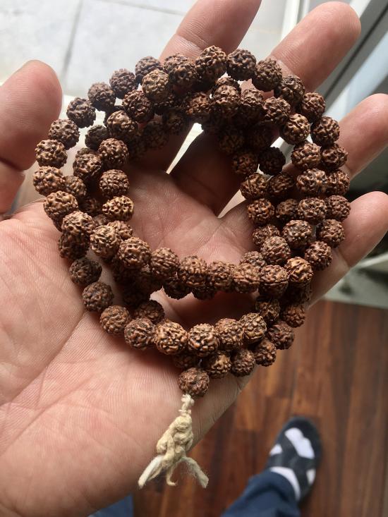 สร้อยคอ ประคําเมล็ดน้ำตาพระศิวะ หรือเมล็ดรุทรักษะ 108 เม็ด ขนาดเม็ดโตประมาณ 9 มม. สร้อยยาวประมาณ 34 นิ้ว