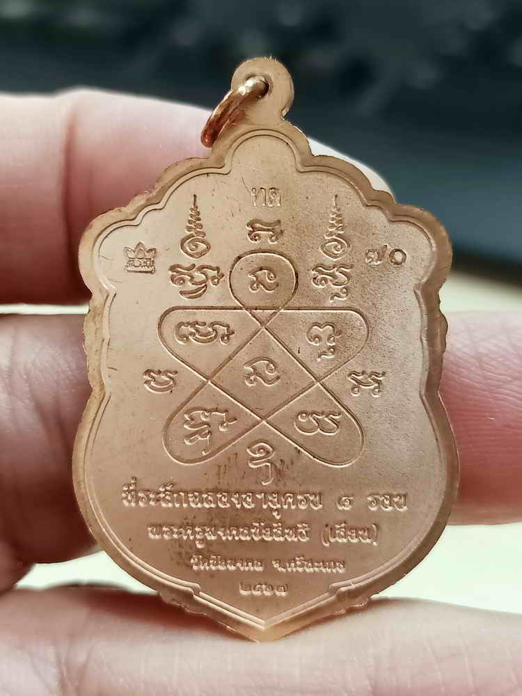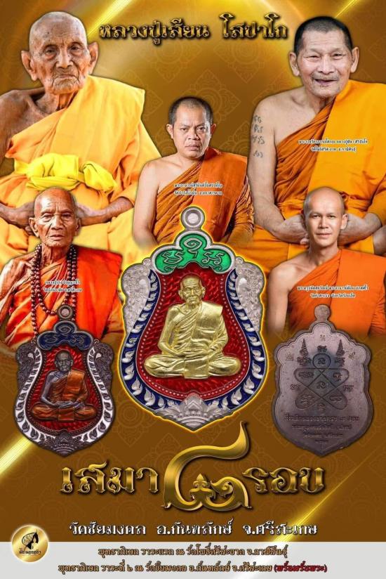วัดใจ 100 เหรียญเสมา 8 รอบ พระครูมงคลชัยสิทธิ(หลวงปู่เสียน) วัดชัยมงคล จ.ศรีสะเกษ 2567 ทองแดงผิวไฟ ลงยาขอบ หมายเลข 70 กล่องเดิม