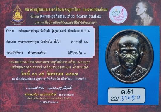 เหรียญรูปเหมือนหลวงพ่อคูณ รุ่นคูณรุ่งโรจน์ เนื้อนวะ ปี2537 ติดรางวัลที่ 1 งานประกวดจังหวัดเชียงใหม่ (งานสมาคมฯ)