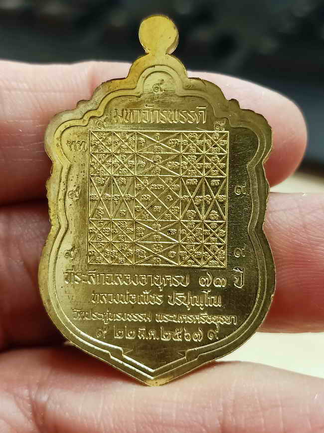 วัดใจ 100 เหรียญเสมามหาจักรพรรดิ หลวงพ่อเพ็ชร ปริปุณฺโณ วัดประดู่ทรงธรรม จ.พระนครศรีอยุธยา ปี 2567 เนื้อปลอกลูกปืน ลงยาจีวร หมายเลข 69 กล่องเดิม