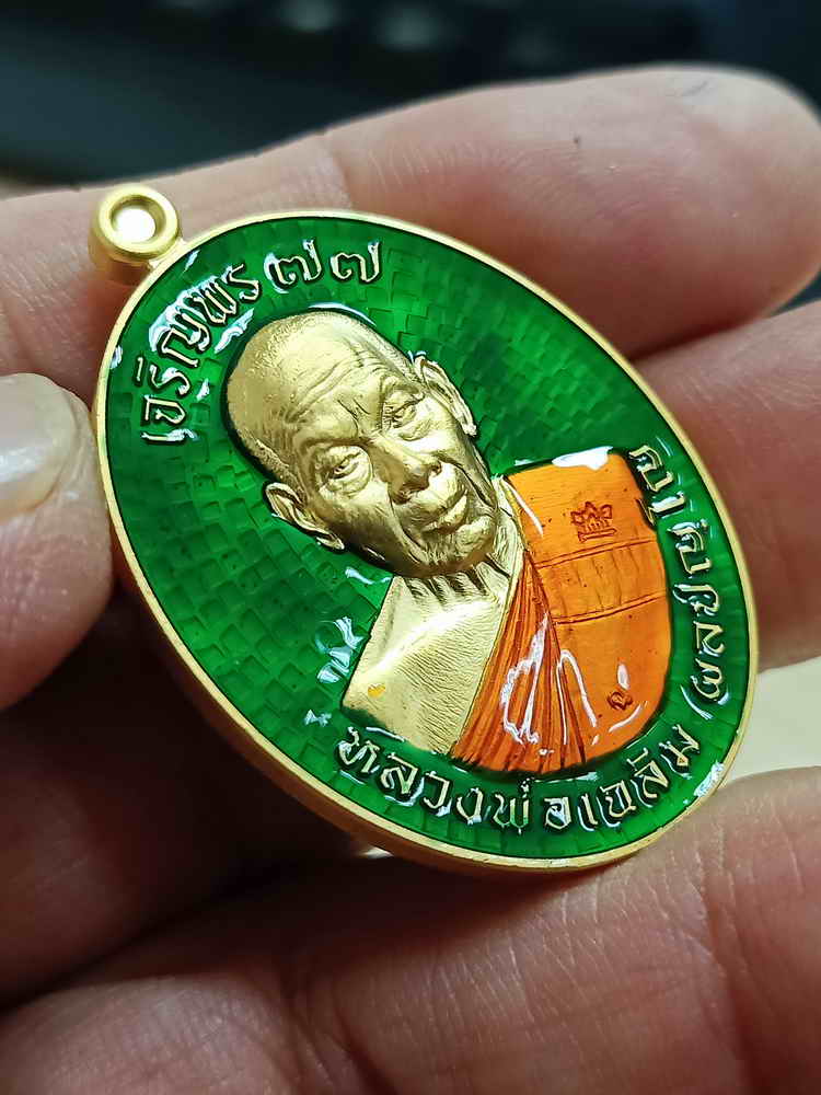 วัดใจ 100 เหรียญเจริญพร หลวงพ่อเฉลิม ผลปญฺโญ วัดพวงนิมิต จ.สระแก้ว 2564 กะไหล่ทอง ลงยาเขียวหมายเลข 114 กล่องเดิม