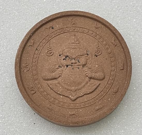 จตุคามรามเทพ รุ่นเทพหนุมานศรีวิชัย รุ่นแรก ปี 2547 วัดพระมหาธาตุวรมหาวิหาร จ.นครศรีธรรมราช เนื้อผง มีจารด้านล่าง