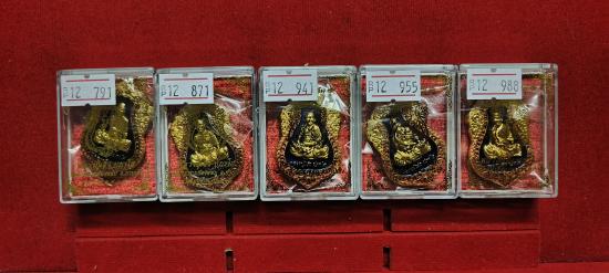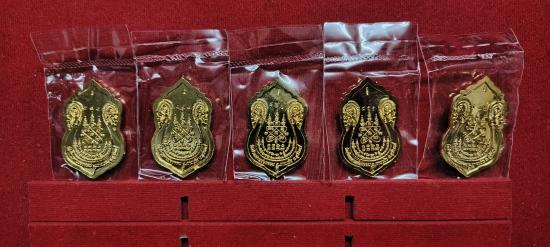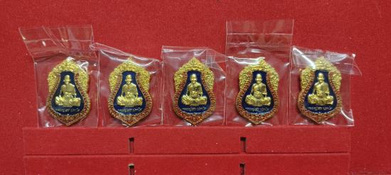 เหรียญเสมาหลวงปู่เฮง วัดบ้านด่านช่องจอม จ.สุรินทร์ ปี2562 รุ่นเฮงทวีโชค รายการที่12 กะหลั่ยทองลงยาน้ำเงิน-แดง แจกในพิธี ชุด5องค์ กล่องเดิมๆประกันแท้