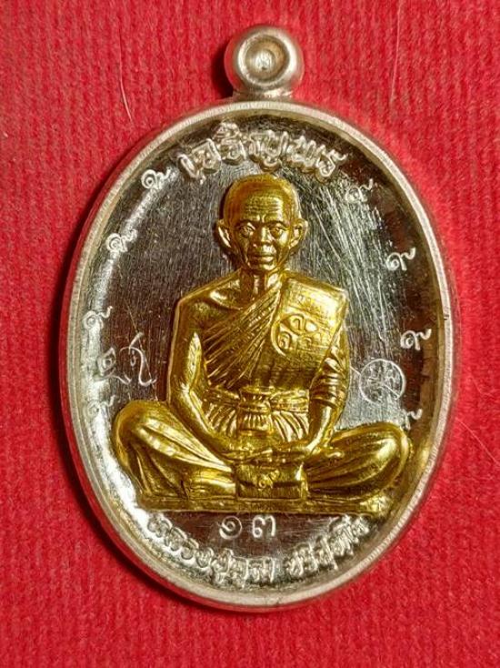 เหรียญหลวงพ่อคูณ ปริสุทโธ รุ่น เจริญพรบนเทพประมานพร ออกวัดบ้านไร่ ปี 58 เนื้อ เงินหน้าทองคำ หมายเลข 13 ตอกโค๊ตเลข 9 รอบ เคาะเดียวแดง