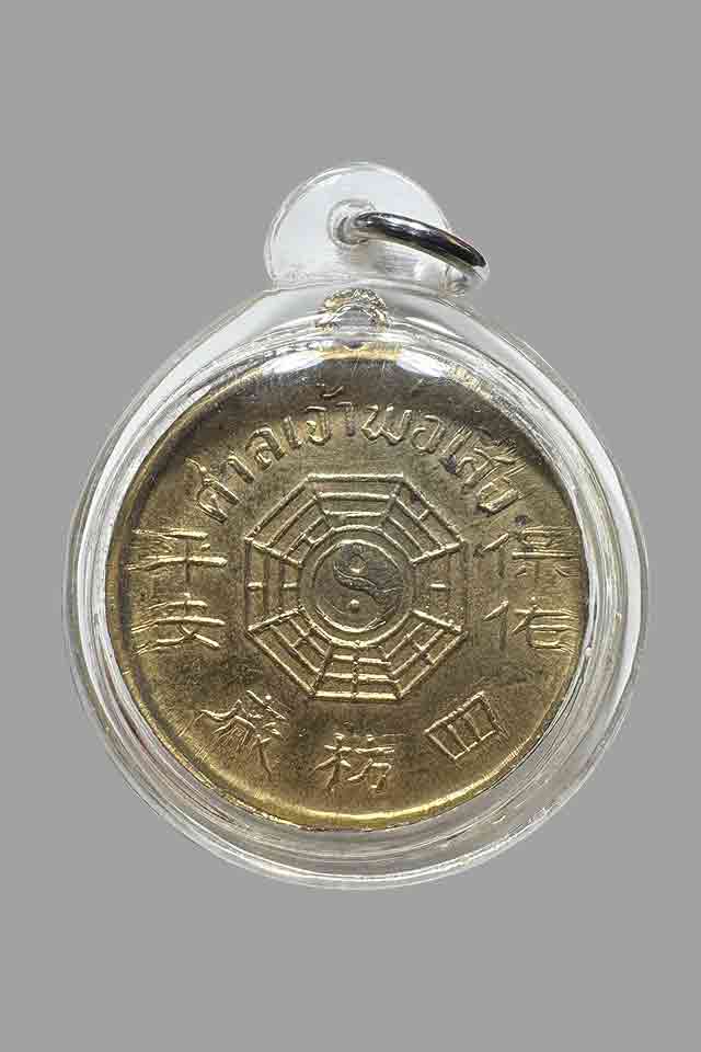 เหรียญเทพเจ้าตั่วเหล่าเอี๊ย ศาลเจ้าพ่อเสือเสาชิงช้า พิมพ์ใหญ่ (เนื้อกะไหล่ทอง ) กรุงเทพ