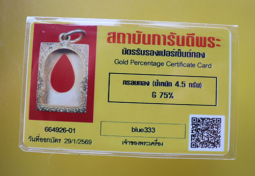 "เคาะเดียว" กรอบทองสี่เหลี่ยม(สั่งทำ) มือ2 ใส่สมเด็จวัดปากน้ำ รุ่น4 และคณาจารย์ต่างๆ น้ำหนัก 4.54 กรัม พร้อมบัตรรับรองG-pra