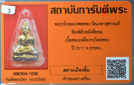 พระกริ่งหลวงพ่อทอง วัดเภตราสุขารมย์ บ้านเพ ปี 2511 จ.ระยอง