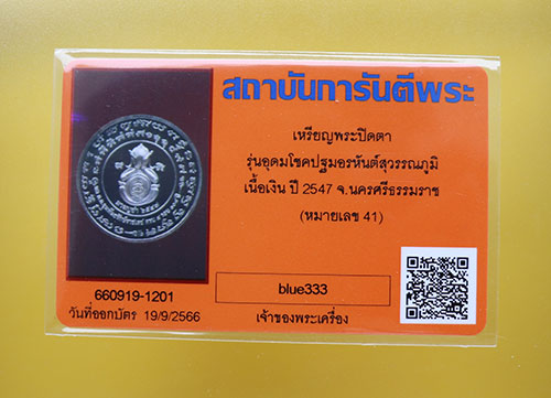 เหรียญพระปิดตามาฆะบูชา รุ่นอุดมโชคปฐมอรหันต์สุวรรณภูมิ เนื้อเงิน หมายเลข ๔๑ สวยๆ เดิมๆ พร้อมกล่องเดิม
