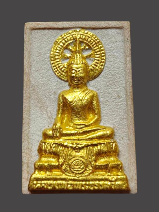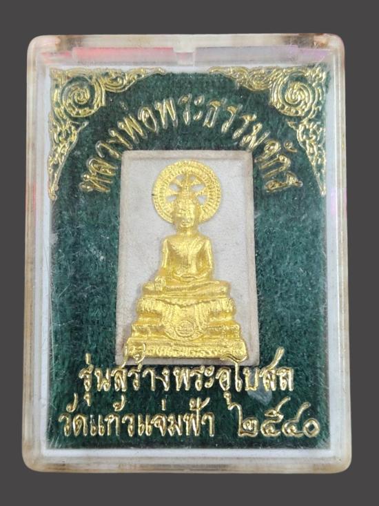 A8279.พระเนื้อผง หลวงพ่อพระธรรมจักร รุ่นสร้างพระอุโบสถ องค์ทาทอง วัดแก้วเเจ่มฟ้า ปี 40 กล่องเดิม