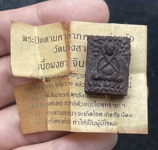 พระปิดตามหาลาภ หลวงพ่อแก้ว วัดนางสาว เนื้อผงยาจินดามณี พร้อมใบฝอย กล่องเดิม