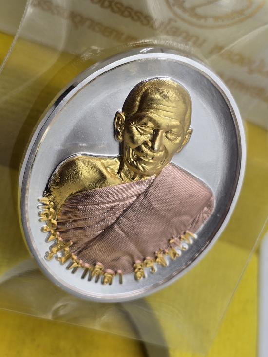 เหรียญ กลม ย้อนยุค อายุวัฒนมงคล 81ปี หลวงปู่มหาศิลา หลวงปู่ศิลา สิริจันโท ธรรมอุทยาน วัดพระธาตุหมื่นหิน จ.กาฬสินธุ์ เนื้อเงิน สามกษัตริย์ เลข ๔๑๐ มีกล่องเดิม ด้านหลังโรยผงตะไบมวลสารรุ่นแรก