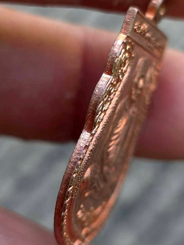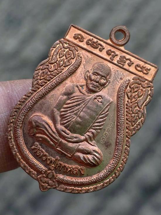 เหรียญเสมาหลังยันต์พญาหมูพลิกแผ่นดิน เนื้อทองแดง หลวงปู่กาหลง เขี้ยวแก้ว วัดเขาแหลม ปี 2550