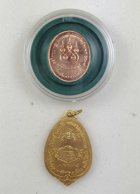 2.เหรียญสมโภช 600 ปี พระธาตุเจดีย์หลวง วัดเจดีย์หลวงวรวิหาร จ.เชียงใหม่ 3 เมษายน 2538 เนื้อทองแดงกะไหล่ทอง
