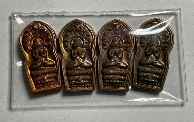 พระปิดตาพังพะกาฬปรกใบมะขามทองแดง รุ่นสองแผ่นดิน ปี 2548 รวม 4 องค์ สภาพสวย