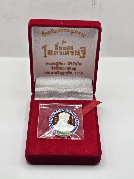 เหรียญ ยี่กอฮง โคตรเศรษฐี ปี67 หลวงปู่มหาศิลา หลวงปู่ศิลา สิริจันโท ธรรมอุทยาน วัดพระธาตุหมื่นหิน จ.กาฬสินธุ์ เนื้อเงิน ลงยาราชาวดีสีแดง เลข 134 มีกล่องเดิม