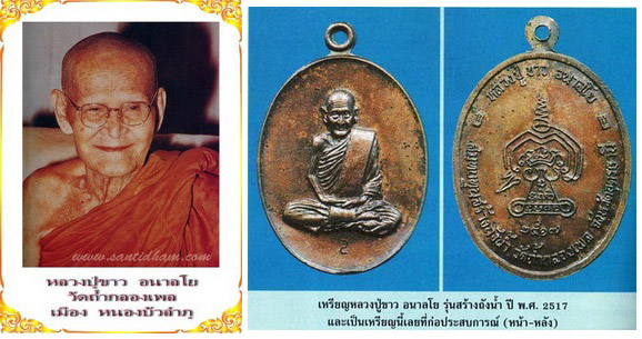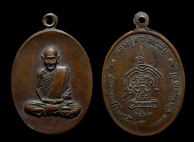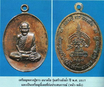 เหรียญสร้างถังน้ำ หลวงปู่ขาว วัดถ้ำกลองเพล จ.อุดรธานี ปี 2517 พิมพ์เต็มองค์ "โค้ด S"