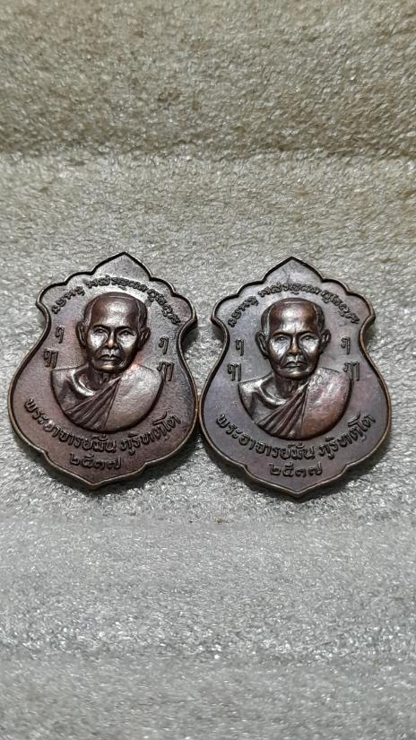 วัดใจเคาะเดียว.......100......เหรียญหลวงปู่มั่น หลังหลวงปู่เสาร์ ปี 2537 รุ่นทรัพย์ไพศาล จัดสร้างโดยหลวงปู่หลอ นาถกโร เจ้าอาวาสวัดถ้ำพวง ส่องดาว สกลนคร รวม 2 เหรียญ