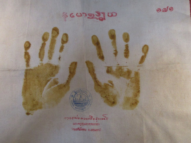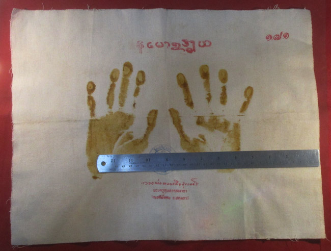 ผ้ายันต์ รอยมือปั้มสด หลวงพ่อทองกลึง สุนทโร