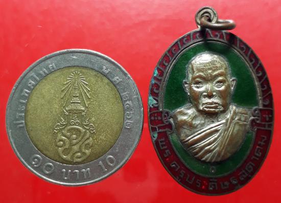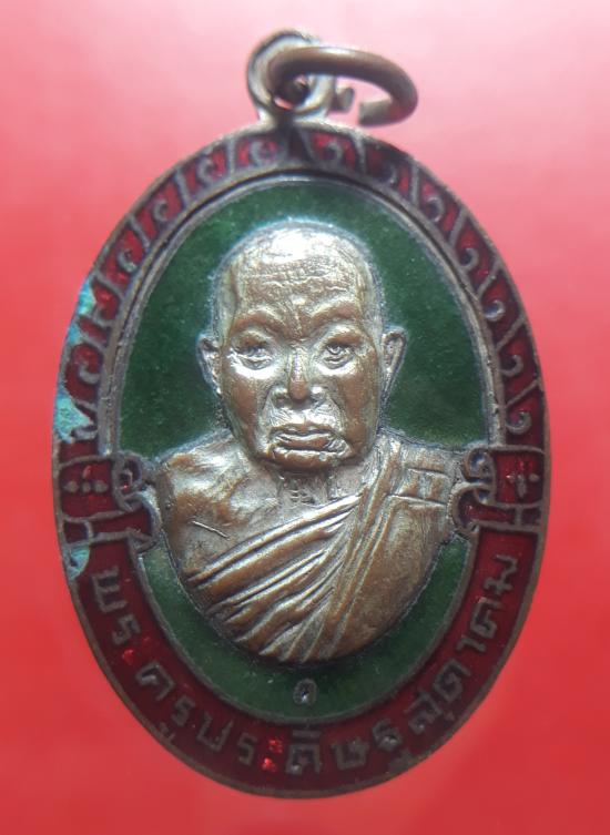 เหรียญหลวงพ่อถึก วัดสนามช้าง ฉะเชิงเทรา ปี 19 กะไหล่เงินลงยา เคาะเดียวแดง