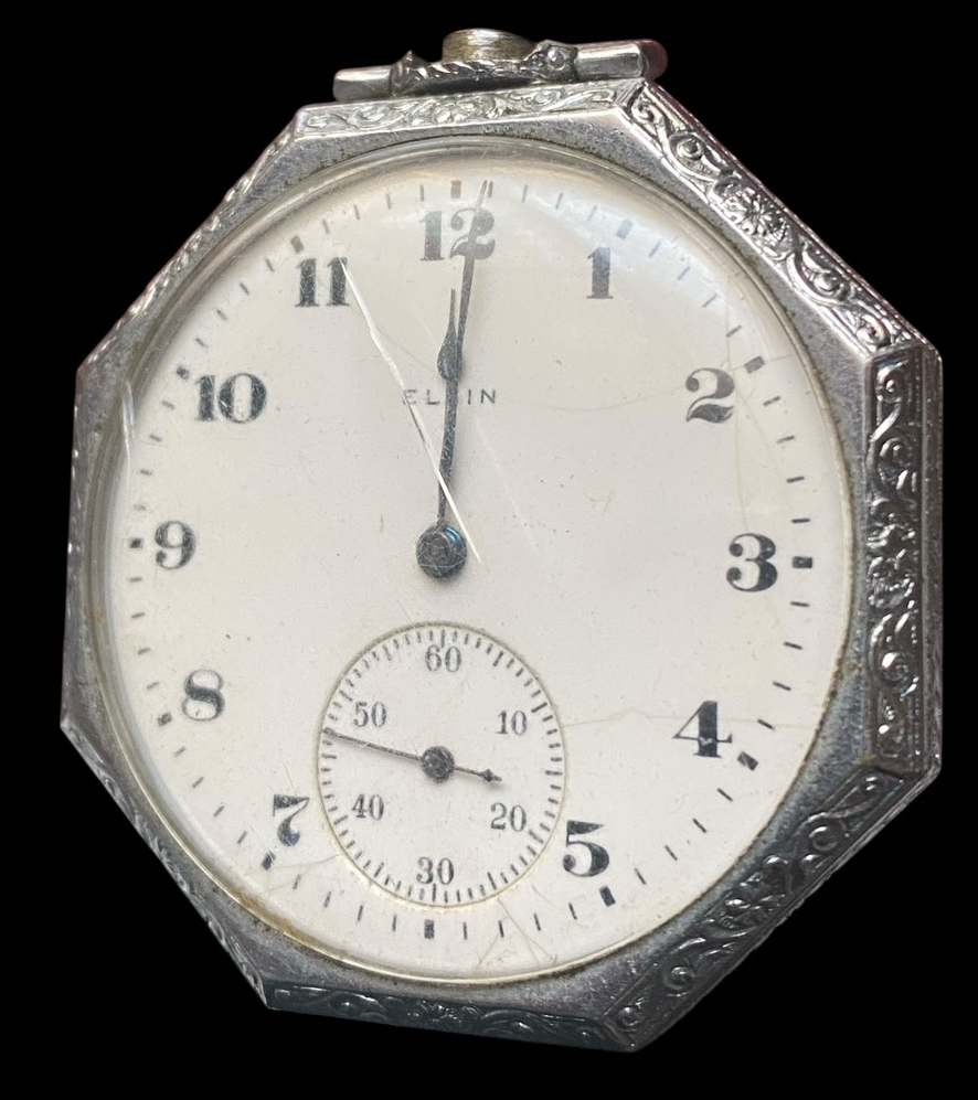 นาฬิกาพกวินเทจยี่ห้อ Elgin เป็นแบรนด์นาฬิกาอเมริกาครับ ตัวเรือน 8 เหลี่ยม