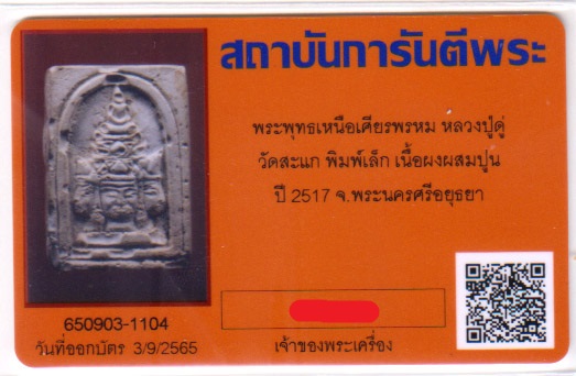 พระเหนือพรหม พิมพ์เล็ก ปี2517 หลวงปู่ดู่ วัดสะแก อยุธยา **พร้อมบัตรรับรองG-pra**