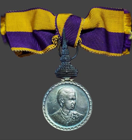 เหรียญที่ระลึกประดับแพรแถบ พระราชพิธีสถาปนาสมเด็จพระเทพรัตนราชสุดาฯ สยามบรมราชกุมารี เมื่อปี พ.ศ. 2520 เนื้อเงิน ผู้หญิง