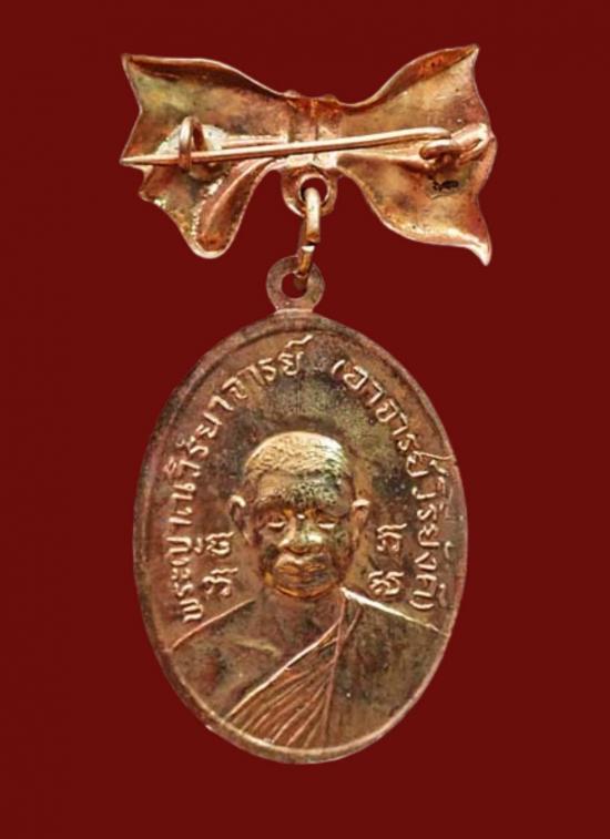 เหรียญรุ่น 2 หลวงพ่อวิริยังค์ วัดธรรมมงคล ปี 2518 เนื้อทองแดง พิมพ์แจกกรรมการอุปถัมภ์มีเข็มกลัดโบว์ สวยเดิม ผิวเดิม