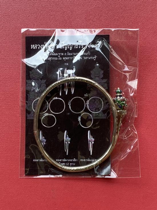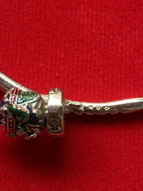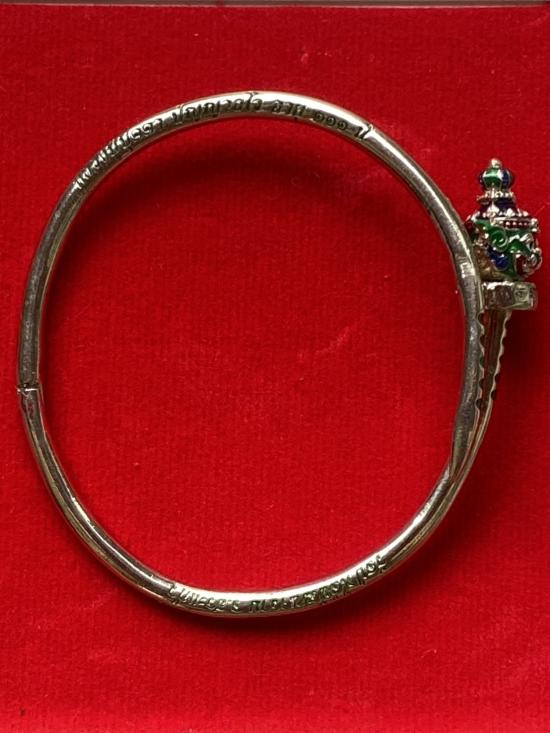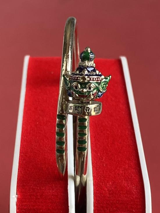 เคาะเดียวแดง หลวงปู่บุดดา กำไลท้าวเวส เนื้อ ทองขาวขัดเงาลงยาเขียว