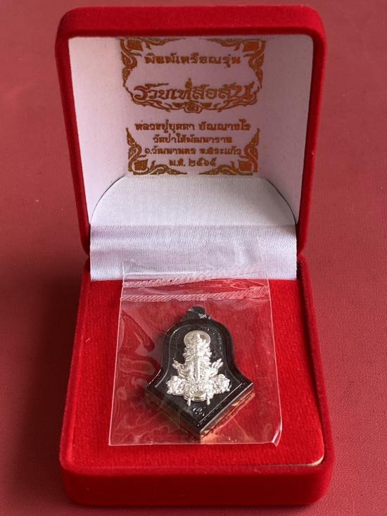 เคาะเดียวแดง หลวงปู่บุดดา ท้าวเวส รุ่น รวยเหลือล้น เนื้อ นวะโบราณ หน้ากากเงินลงยาขอบแดง