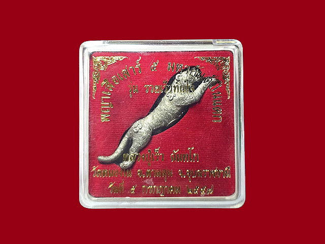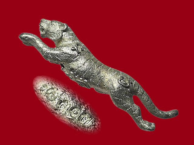 พญาเสือมหายันต์ปืนแตก รุ่นแรก สุดยอด เครื่องรางของวิเศษสำหรับลูกผู้ชายไทย พยัคฆราชแห่งดินแดนอีสาน ที่บรรจงสร้างเป็นรูปเสือเผ่นโจนทะยาน เรียกสูตรลงกำกับด้วยพุทธาคม พุทธามหาเวทตามศาสตร์สายวิชา พญาเสือ ตวัดขีดลากเส้นสายลายยันต์ด้วย มหายันต์ปืนแตก นะวิเศษหัวใจ พญาเสือโคร่ง นะวิเศษหัวใจ พญาราชสีห์ นะวิเศษหัวใจ พระอิติปิโสฯ รัตนมาลา " สีหะนาทัง " นะวิเศษหัวใจ บังปืน หล่อหลอมขึ้นจากโลหะแร่ธาตุวิเศษตามตำราโบราณทุกประการ