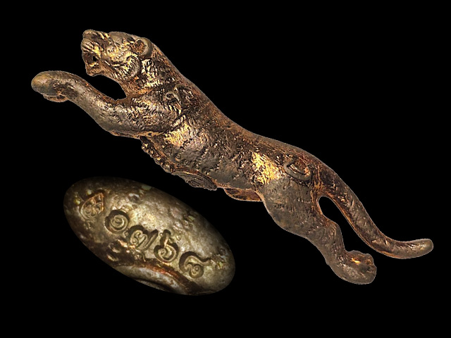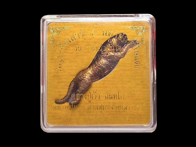พญาเสือมหายันต์ปืนแตก รุ่นแรก สุดยอด เครื่องรางของวิเศษสำหรับลูกผู้ชายไทย พยัคฆราชแห่งดินแดนอีสาน ที่บรรจงสร้างเป็นรูปเสือเผ่นโจนทะยาน เรียกสูตรลงกำกับด้วยพุทธาคม พุทธามหาเวทตามศาสตร์สายวิชา พญาเสือ ตวัดขีดลากเส้นสายลายยันต์ด้วย มหายันต์ปืนแตก นะวิเศษหัวใจ พญาเสือโคร่ง นะวิเศษหัวใจ พญาราชสีห์ นะวิเศษหัวใจ พระอิติปิโสฯ รัตนมาลา " สีหะนาทัง " นะวิเศษหัวใจ บังปืน หล่อหลอมขึ้นจากโลหะแร่ธาตุวิเศษตามตำราโบราณทุกประการ