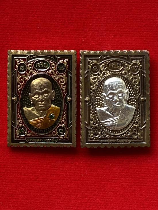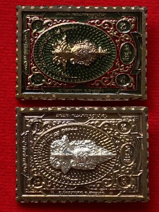 เคาะเดียวแดง หลวงปู่บุดดา รุ่น แสตมป์เงินล้าน รายการที่3 ชุดรองประทาน เนื้อ นวะหน้ากากเงินหน้าหลัง นวะลงยาฝังพลอยเขียว (ไม่มีเนื้อเงิน)