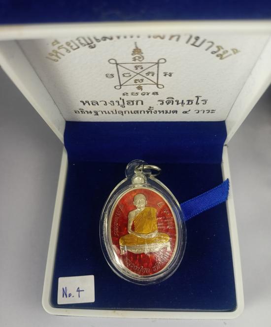 (เลขเดี่ยวสวย เบอร์ 4 ) เหรียญพิมพ์ไข่ "เมตตามหาบารมี" หลวงปู่ฮก รตินธโร อายุ 91 ปี วัดมาบลำบิด จ.ชลบุรี ปี58 เนื้อเงินลงยาชุ้ยพื้นสีแดง เบอร์ 4 พร้อมเลี่ยมและกล่องครับ (น้ำหนักรวมเลี่ยม 18.64 กรัม)