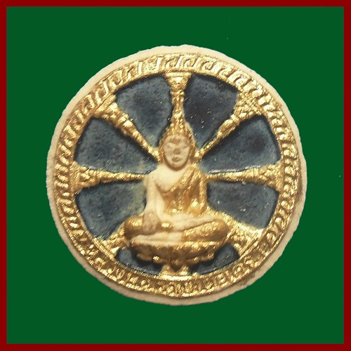 สวย ซองเดิมๆ-220- พระผงธรรมจักร (จักรพรรดิ์)ลงสีปิดทอง หลวงพ่อวัดเขาตะเครา อ.บ้านแหลม จ.เพชรบุรี พศ.2518