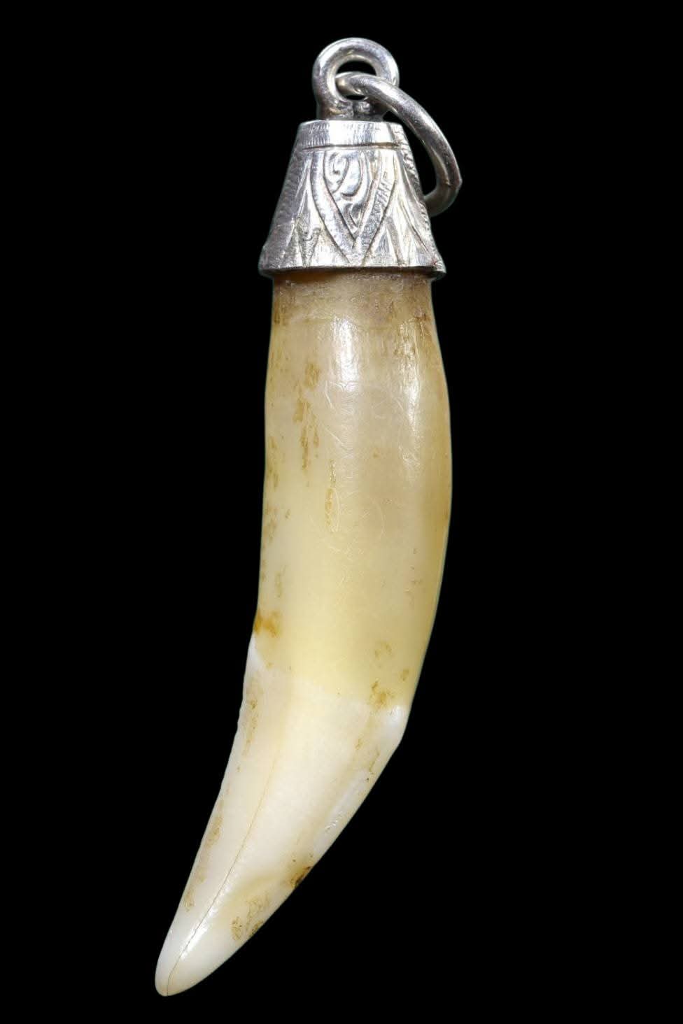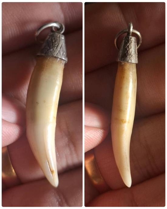 เคาะเดียว เขึ้ยวเสือไฟเต็มเขี้ยวเก่า ส่องๆมีรอยบิ่นหน่อย เจ้าของเดิมติดใส่ห่วงเงินครับ