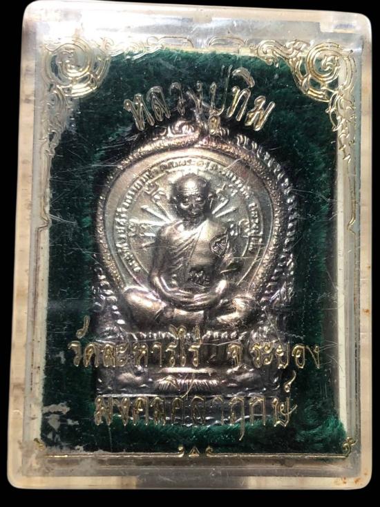 เหรียญนั่งพาน หลวงปู่ทิม อิสริโก วัดละหารไร่ รุ่นมงคลศิลาฤกษ์ปี37กะไหล่เงิน ตอก2พร้อมกล่อง