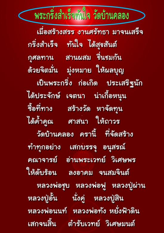 จัดสร้างเพื่อจัดหาทุนซื้อที่ดินถวายวัดบ้านคลอง