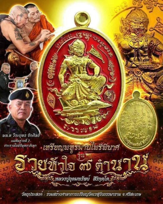 เหรียญพระหูรมานไพรีพินาศ รุ่นรวยหัวใจ ๗ ตำนาน ลป.อุดมทรัพย์ วัดเวฬุธรรมาราม ศรีสะเกษ ลป.ศิลา ปลุกเสก แม่ทัพภาคที่ 2 เป็นประธานฯ สวยเดิมยังไม่แกะซีล วัดใจ 100 แดงครับ/1