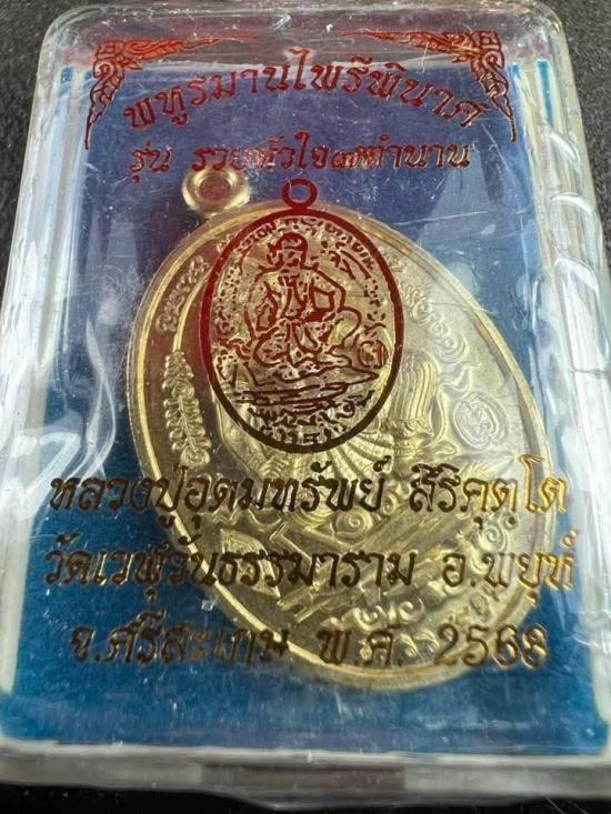 เหรียญพระหูรมานไพรีพินาศ รุ่นรวยหัวใจ ๗ ตำนาน ลป.อุดมทรัพย์ วัดเวฬุธรรมาราม ศรีสะเกษ ลป.ศิลา ปลุกเสก แม่ทัพภาคที่ 2 เป็นประธานฯ สวยเดิมยังไม่แกะซีล วัดใจ 100 แดงครับ/4