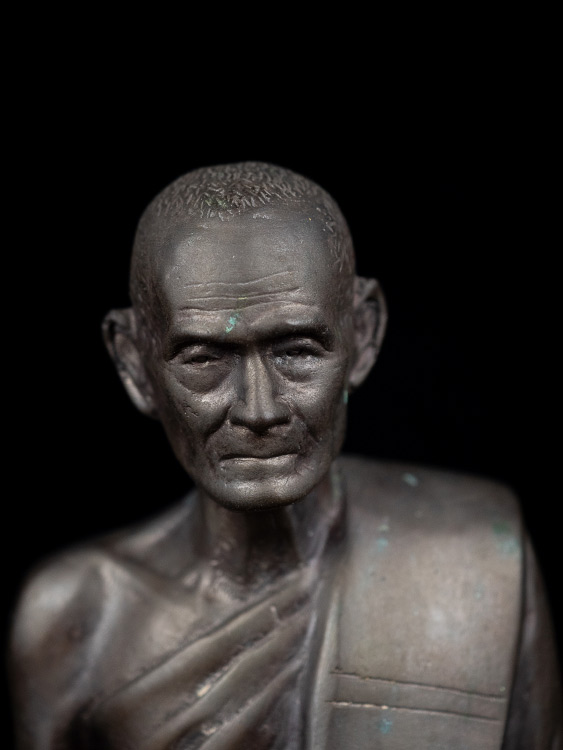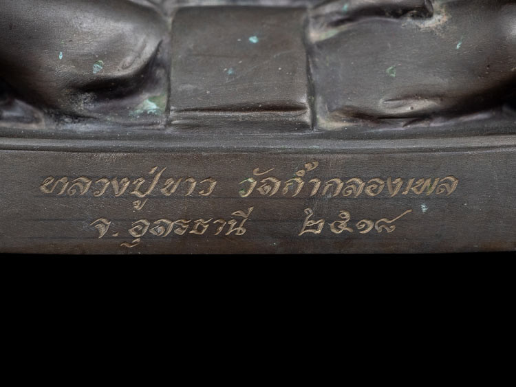 พระบูชารูปเหมือนหลวงปู่ขาว วัดถ้ำกลองเพล รุ่นสาม ปี 2518 จ.อุดรธานี เนื้อทองเหลือง หน้าตัก 5นิ้ว บัตรรับรอง GPRA