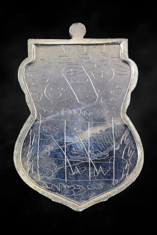 #เหรียญเสมา รุ่น 2 ยกช่อฟ้า เนื้อเงิน พระครูปลัดวิชัยปัญญาทีโป จารเต็มเต็มสูตร สร้างจำนวน 2557 เหรียญ ตามปีที่สร้าง ราคาจอง4800 สวยวิ้งๆ ลายอักขระยันต์ด้านหลังจารเต็มสูตร ด้วยยันต์ตารางและกระบองไขว้ โ