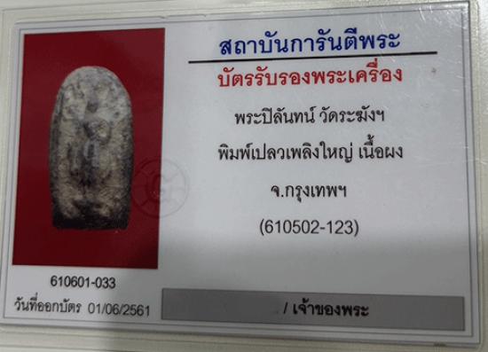 พระปิลันทน์ วัดระฆัง พิมพ์เปลวเพลิงใหญ่ เนื้อผง กรุงเทพฯ สวยเดิมๆสมบูรณ์เลี่ยมทองสั่งทำ%สูงพร้อมบัตรรับรอง