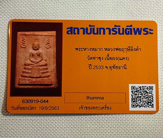 พระหางหมาก หลวงพ่อฤาษีลิงดำ วัดท่าซุง ปี 2533 (พระเนตรมีจุด) สภาพสวยเดิมไม่ผ่านการใช้ พร้อมบัตรครับ