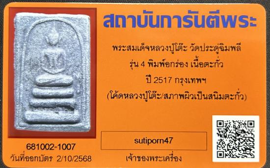 สมเด็จเนื้อตะกั่วรุ่น 4 พิมพ์อกร่อง หลังมีจาร +บัตรรับรอง