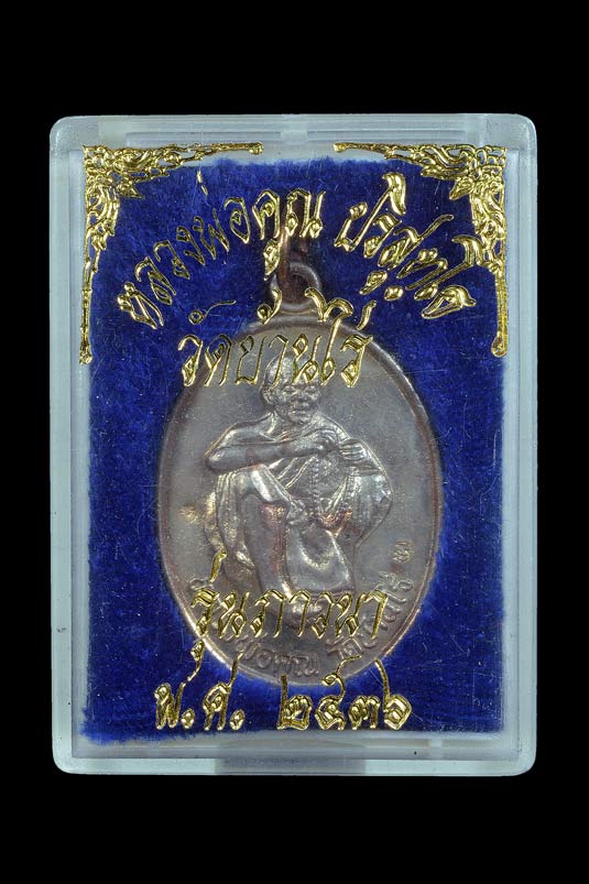 เหรียญรูปเหมือนนั่งบริกรรมคาถาชักประคำ รุ่น ภาวนา ( เนื้อนวโลหะ ) พ.ศ.2536 ( กล่องเดิม ) จัดสร้าง 999 เหรียญ