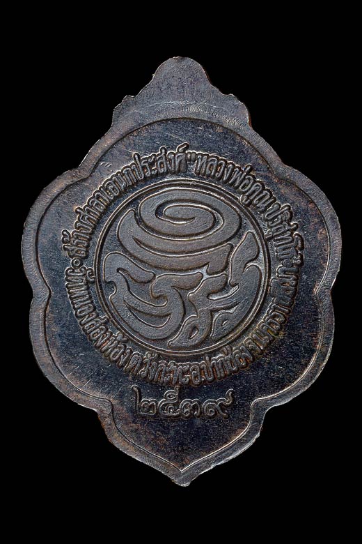 เหรียญ ( พิมพ์ใบโพธิ์คว่ำ หลังยันต์มะอะอุ ) สร้างศาลาเอนกประสงค์ วัดหนองสองห้อง ( เนื้อนวโลหะ ) พ.ศ.2539